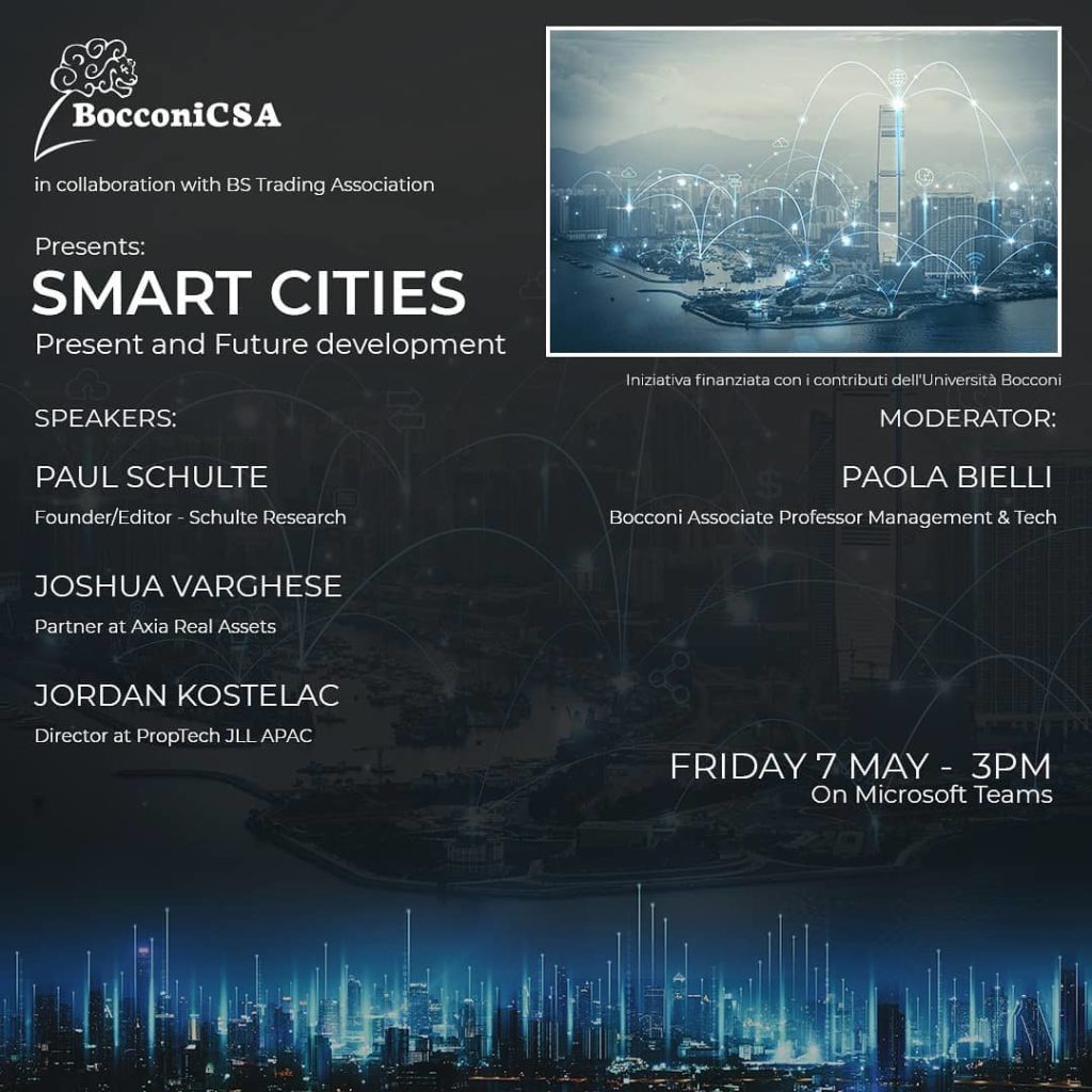 On Friday 7th of May 2021, Bocconi Chinese Student Association in collaboration with Bocconi Students Trading Association organized the online event “Smart Cities: present and future development”.